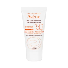 Avène solar crema pantalla física SPF50 es un fotoprotector solar 100% mineral que ofrece una muy alta protección frente a los UVB y UVA .