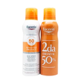 Eucerin Spray Toque Seco con SPF50 está formulado especificamente para el cuerpo con piel sensible. Sus filtros anti-UVA/UVB ofrecen una protección eficaz contra el daño en la piel producido por el sol. Los rayos UV pueden llegar a provocar daños en las capas más profundas de la piel; Eucerin Sun Protection Spray Toque Seco ha demostrado ser eficaz protegiendo a las células desde el interior. El antioxidante Licocalcona A, ingrediente activo natural, protege las células de la piel en las capas más profundas de la epidermis frente al daño causado por los radicales libres.