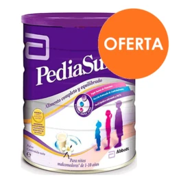 PediaSure Polvo, con el beneficio adicional de los simbióticos, ayuda a reforzar su sistema inmune. Favorece el desarrollo óseo y el crecimiento de compensación. Favorece el normal desarrollo del cerebro y sistema nervioso. Buena tolerancia digestiva casi isotónica, que previene las diarreas. Es idóneo para niños con intolerancia a la lactosa y niños celíacos. Una toma de 225 ml de PediaSure Polvo aporta: 225 kcal. 6,8 g de proteínas de alta calidad (12 % de las calorías totales), 24,1 g de hidratos de C (43 % de las calorías totales) , 11,2 g de grasas (45 % de las calorías totales) .